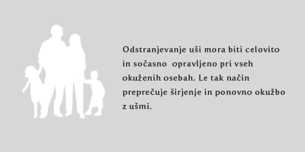 Da bi zagotovili popolno odstranitev uši in preprečili ponovno okužbo, je potrebno odstranjevanje opraviti sočasno pri vseh članih družine, ki bi lahko bili okuženi z naglavnimim ušmi.
